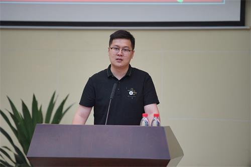 表彰大会现场,控制工程学院顾硕鑫老师领誓,新进教师进行了师德宣誓。