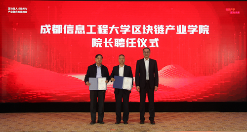 会上,四川省委教育工委书记、教育厅党组书记、厅长李江为“四川省人工智能产教融合创新基地”揭牌。四川省经济和信息化厅副厅长皮亦鸣、中关村区块链产业联盟创始人元道为“区块链产业学院”揭牌。学校党委书记周激流为清华大学朱岩教授颁发“区块链产业学院”学术院长聘书,学校校长余敏明为世纪互联高级副总裁刘丰颁发“区块链产业学院”产业院长聘书,为武志学博士颁发“区块链产业学院”副院长聘书。中国工商银行成都分行副行长何逸、学校副校长范广洲为“区块链金融研究中心”揭牌。