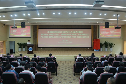 5月26日下午,“中国政府统计研究中心”成立揭牌暨学校与重庆市统计局、国家统计局四川调查总队战略合作协议签署仪式在航空港校区国际会议厅隆重举行。