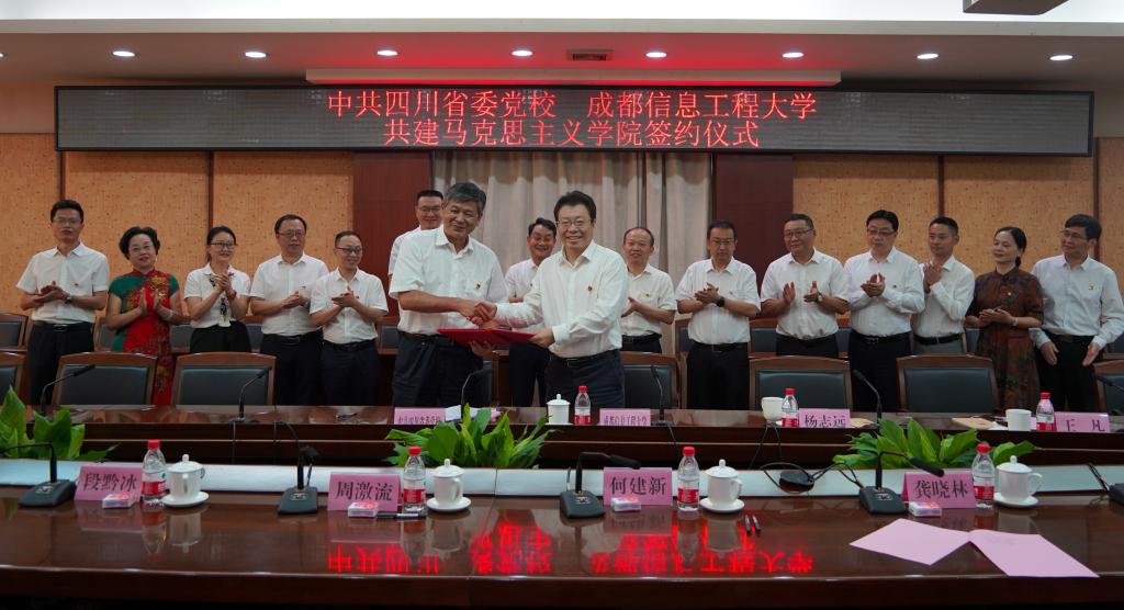 9月30日下午,学校与中共四川省委党校共建马克思主义学院签约仪式在航空港校区第七会议室举行。副校长何建新主持仪式。